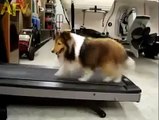 Une femme surprend son chien de race Shetland en train de tricher sur le tapis de course. En effet, le chien se met en arrière pour reposer ses deux pattes arrière. Mais quand sa maitresse lui fait remarquer qu'il triche, le chien remet les quatre pattes sur le tapis et trotte à nouveau.