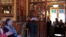 Poet Stuart Jones performs in front of a full house at the Drumbeats Poerty Slam.