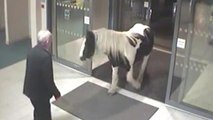 Horse Walks into Police Station, Caught on Surveillance Video