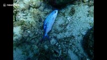 Diver rescues tiny fish stuck inside plastic bag
