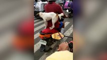 Un homme transporte son chien sur un scooter !
