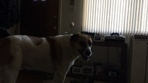 Zeney (pronounced Zen-ee), a rescue pit/boxer mix, absolutely loves to sing with his owners, the Sucharski's. They're a very musical family who enjoy singing around the house and one day had noticed that Zeney wanted to join in on the fun with them. Here he's singing a belated "Happy Birthday" with his dad to mom!