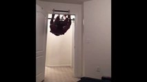 Who needs an expensive gym membership when you can get a great workout at home with just a few pieces of equipment? This guy certainly does not. With some gym equipment set up in his doorway, this dude is ready to go. Unfortunately his equipment is not. While getting ready to do his first rep, the equipment fails and falls to the ground. Maybe he should have paid a little more attention to the manual.