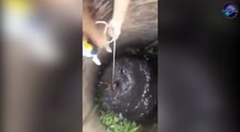 Kitten stuck in drain for 2 hours, rescued with pipe and rope