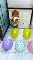 The master designed a very difficult balloon game for his puppy, but it didn't beat the clever puppy.