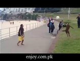This dog is really amazing. He is playing football with his owners at seashore. I'm very pleased to see this video, so watch, enjoy and share with friends and family.