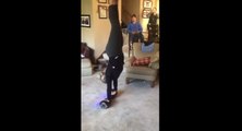 Un saoudien monte sur un hoverboard devant ses enfants. C'est la première fois qu'il teste ce genre d'engin.