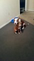 A puppy is helping out mommy and daddy with chores...