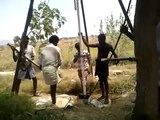 Bore well submersible pump lifting manually in JiJi Farm.
