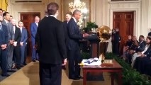 NBA'in başarılı takımlarından Golden State Warriors, Beyaz Saray'a Başkan Barack Obama'yı ziyarete gitti. Obama, Warriors'un yıldız oyuncusu Stephen Curry'yi taklit edince salon kahkahalara boğuldu.<br /><br /><br /> ...daha fazlası için http://www.sporx.com/tv/