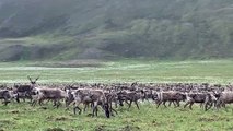 A family on a safari in Parc Omega, north of Montreal, Quebec, got up close and personal with a giant caribou that came looking for a snack inside their vehicle. Video footage captured by David Freiheit on February 6 shows a little girl inside a car next to an open window through which a caribou peaks its head inside. The adorable little girl then puts out her palm with a snack of carrots for the caribou to munch on.The gentle animal pops in and out of the car window, seemingly looking for more to eat, before the family slowly drives away.\n\"They were the most docile, beautiful and majestic animals I have ever seen. And they smelled surprisingly good - like pine sap and campfire,\" Freiheit told Storyful. Credit: David Freiheit