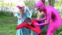 Frozen Elsa MUSIC BOX SPELL! w/ Spiderman Joker Maleficent Pink Spidergirl Pool Fun in Real Life
