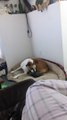 Kitten plays with big american staff dog! So cute...