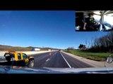 Red Neck Trucker is on his phone cruising down the road, when one car merges infant of him and then a 2nd attempts to merge as well. The trucker seems to not see this blonde in the VW, and holds his lane. Who is at fault? Do you think the trucker even saw her? She is VERY lucky to be alive, that is for sure!