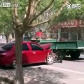 LiveLeak - Villager drives trailer tractor to clear illegal street parking