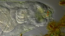 Mr. Alex Ritter with Dr. Bi-Chang Chen (Academia Sinica, Taipei, Taiwan), Dr. Wesley Legant (Janelia Farm Research Campus, Ashburn, VA), Dr. Liang Gao (Stony Brook University, Stony Brook, NY)<br />National Institutes of Health<br />Washington, D.C., USA<br />Killer T cell engaging a cancer cell.<br />Light Sheet Microscopy<br />1000x<br /><br />Ultrafast light sheet imaging of the actin cytoskeleton of a killer T cell (orange) engaging a cancer cell (cyan). <br />