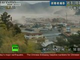 Live Helicopter View Japan Tsunami Wave on Beach