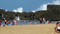 Dramatic moment seven foot tidal wave sweeps away beach chairs, mini tsunami strikes the Netherlands!