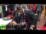 Footage courtest of Celeste Chorniak and Gabby Morrongiello shows 58-year-old veteran Time photographer Christopher Morris get up from the ground after a Secret Service agent grabbed him by the neck and slammed him to the ground at a Donald Trump campaign rally in Radford, Virginia on Monday.