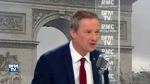 Nicolas Dupont-Aignan, invité de BFMTV et RMC ce mercredi matin, a considéré que l'élection américaine et la montée de Donald Trump "est le symbole d'un ras-le-bol des peuples, dominés par une oligarchie qui se met toujours plus d'argent dans les poches". "Quand trop longtemps vous imposez à un peuple des inégalités, à un moment des personnalités hautes en couleur et excessives en profitent", a-t-il déclaré. Pourtant, le président de Debout la France a reconnu que "Donald Trump dit des choses qui méritent d'être écoutées", évoquant le protectionnisme et le contrôle des frontières.