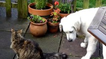 Cat loves cutest golden retriever puppy