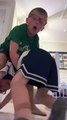 Boy does tombstone/pile driver WWE wrestling move on little brother (Slow motion)