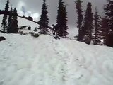 My dog playing on the snow