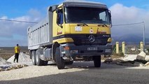 Mercedes 3340 dumper truck dropping gravel