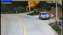 Footage has emerged from China of a tyre falling from a lorry and flying into another vehicle at astonishingly quick speed. <br /><br />The CCTV footage, filmed in Chongqing on February 19, shows the tyre bouncing on the road and flying into a people carrier before disappearing onto a mini roundabout. <br /><br />According to local reports, the driver of the damaged car couldn't work out what hit him because the tyre had bounced away, so he apparently thought it might have been a UFO.