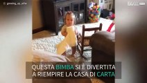 Bimba ricopre la casa di carta da cucina