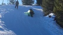 Dog Chases His Human Sledding Down Ski Hill