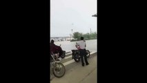 Ver para creer. Estos viandantes no pueden luchar contra el viento. Acaban desplazados y algunos cayendo.