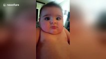 Baby pulls sad face when her mother sings to her
