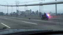 A little Chihuahua led police on a wild dog chase across the Oakland-San Francisco Bay Bridge on Sunday. Footage from a police car’s dash cam shows officers closely monitoring the canine’s progress as it scampered across the five-lane road bridge, which had to be partially closed for the pursuit.