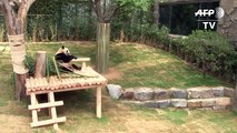 A pair of giant pandas, a state gift to South Korea from Chinese President Xi Jinping, are unveiled to the press during a media preview at Everland Amusement and Animal Park.