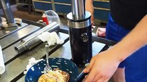 Un Big Mac fracassé à la presse hydraulique