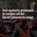 Anti-austerity protesters in London call for David Cameron to resign