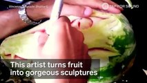 This artist carves sculptures using fruits