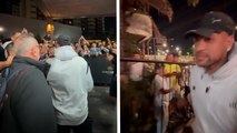 Iker Muniain hace de maestro de ceremonias en una fiesta improvisada ante cientos de aficionados del Athletic de Bilbao