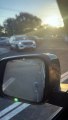 Un agent escorte Testy Turkey hors d’une route très fréquentée