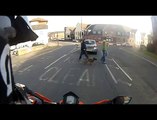 Un homme se fait renversé juste devant un motard
