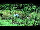 Assam, Apr 14 (ANI): Hours after the British royal couple visited the Kaziranga National park, a male adult rhino was killed and its horn taken away by armed poachers at around 11.10 pm on Wednesday night. As many as 88 cases of AK-47 cartridges were found from the spot. The carcass of the rhino was recovered from a place under Burhapahar range of the park.