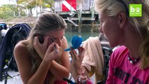 Model swims with Sharks on fashion shoot