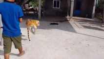 Funny: A fake tiger tricks a dog! try not to laugh so loud! lol! Part 1