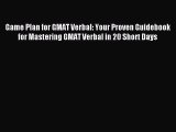 Read Game Plan for GMAT Verbal: Your Proven Guidebook for Mastering GMAT Verbal in 20 Short