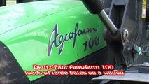 Deutz Fahr Agrofarm 100 loads of large bales on a wagon 2012