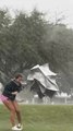 Footage, filmed earlier today, of "snowy" hail hitting Derbyshire, UK, during a sudden thunderstorm after temperatures dropped to unusual lows for April.