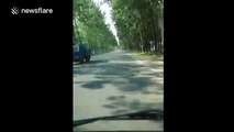 Man uses spanner instead of steering wheel to drive car