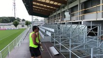 Les bénévoles de l'AF Virois installent 300 sièges dans les tribunes