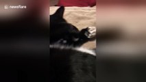 Meet the laziest cat who doesn't want to get up